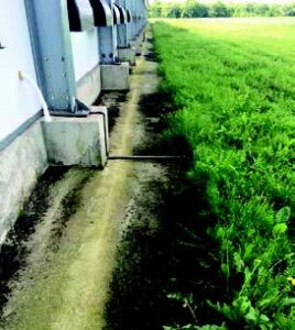 مناسب است که یک نوار آسفالت به عرض حداقل یک متر در اطراف سالن ها باری کنترل جوندگان قرار دهید. این نوار اخیرا تمیز نشده است و علف ها خیلی بلند هستند.