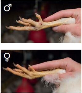 در حدود سن چهار هفتگی، نرها زودتر تاج قرمز نشان می‌دهند و در ماده‌ها تاج هنوز به‌سختی رشد کرده است. پس از آن، این تفاوت تا بلوغ، سخت‌تر قابل مشاهده است. خطاهای جنسیتی حدود نیم درصد طبیعی است و ۲ درصد، بسیار زیاد محسوب می‌شود.