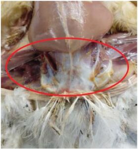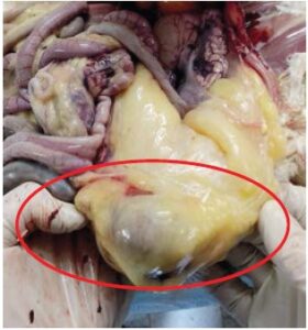 یک لایه نازک چربی روی استخوانهای پین نشان میدهد که مادهها در حال ذخیره چربی در حفره شکمی برای آماده شدن جهت شروع تخمگذاری هستند. تصویر، پوشش چربی کافی روی استخوانهای پین قبل از جابهجایی به سالن تولید را نشان میدهد.